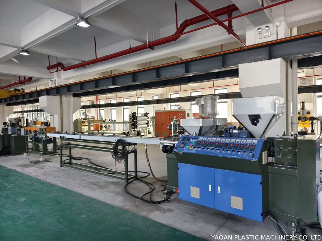 The YAOAN Φ55/30 three-color synthetic rattan extrusion line is a newly upgraded high-speed, high-stability plastic extrusion equipment specially used for producing PE / PP / PVC three-color imitation rattan. It adopts a single-screw main extruder with Φ55 screw and two sets of Φ30 color extruders, which can stably produce colorful, gradient, mixed-color, and patterned plastic rattan with uniform color, clear texture, and good toughness.